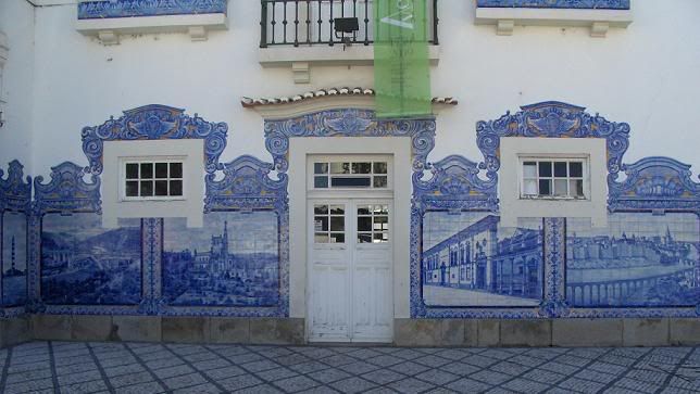 Embora já conhecendo através de fotos, constatámos que a fachada da estação é mesmo linda, coberta de painéis de azulejos com temas regionais, representando paisagens e actividades características daquela zona.