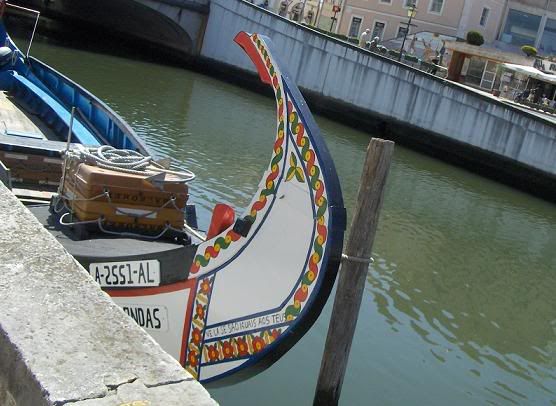 Aí, pudemos apreciar os belos moliceiros, com as características inscrições na proa.